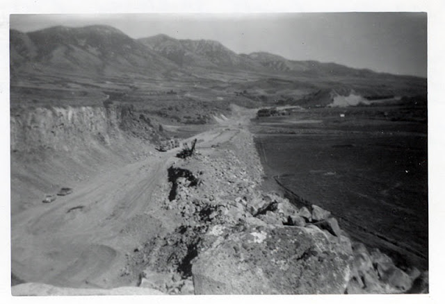 You can see (above) how the construction proceeded into 1963. This photo was taken by Lena Sexton from the Sorrell Creek dugway. Our family house can be seen on the left, at the base of the road bed. Construction took our barn, pasture, and corrals. The Feds paid my father for the land prior to construction and with that money, he and my brother purchased acreage further up Rapid Creek Road.